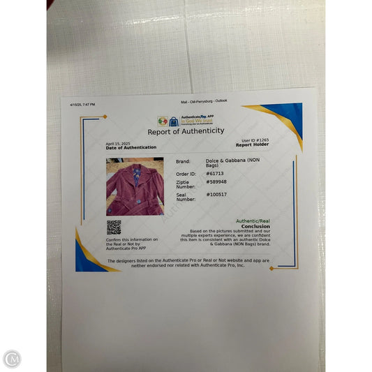 Coat Luxury Designer By Dolce And Gabbana In Purple, Size: L