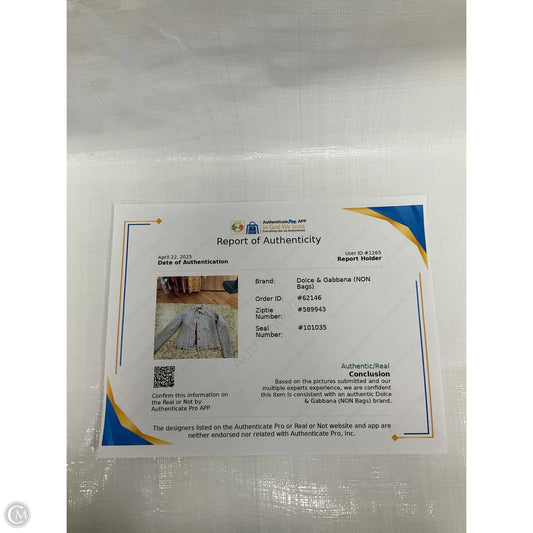 Jacket Luxury Designer By Dolce And Gabbana In Grey, Size: M