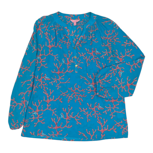 Top Long Sleeve Designer By Lilly Pulitzer In Blue & Pink, Size: M