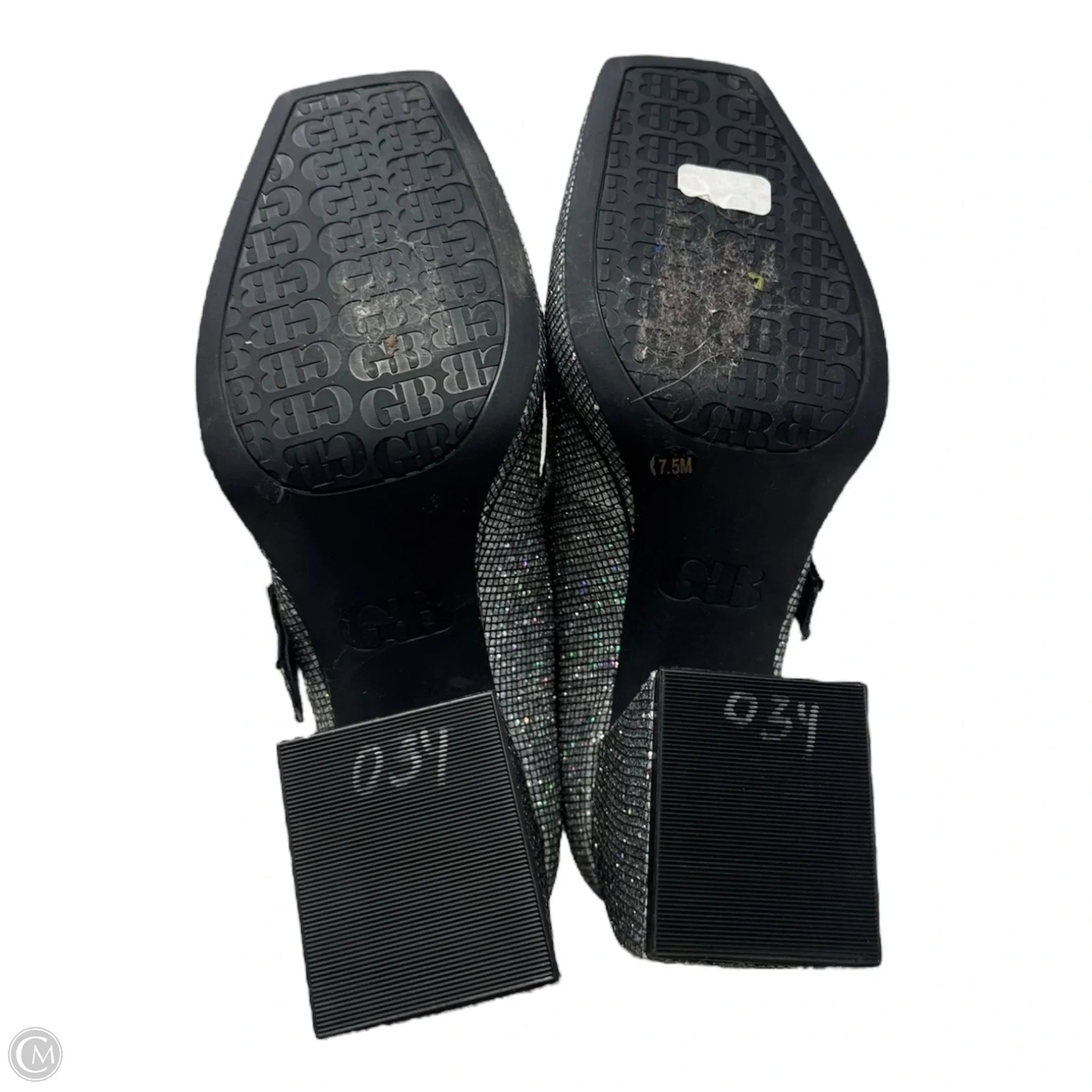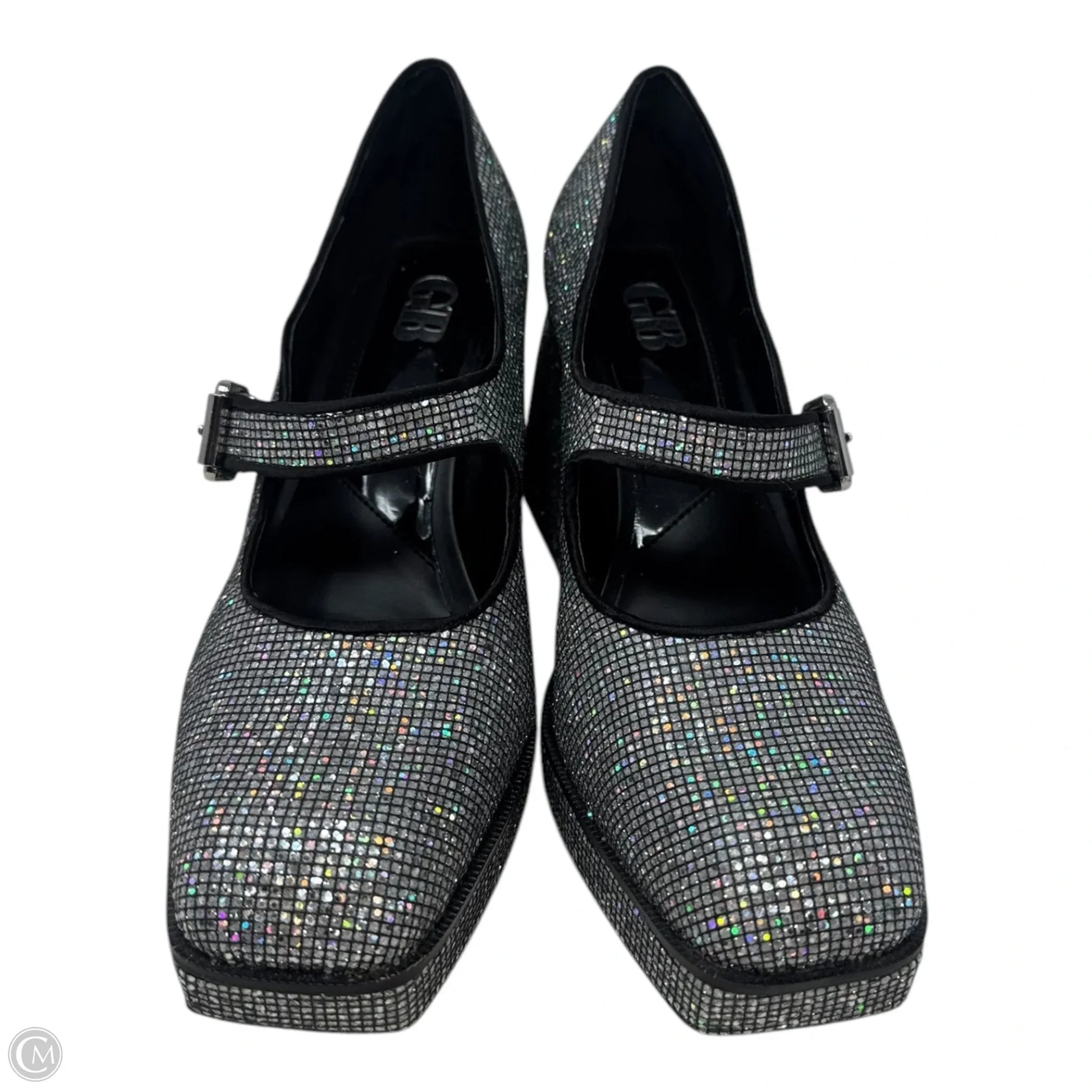 Gianni Bini Silver Block Heel Shoes, Size 7.5. Distinctive metallic sheen. Cushioned insole for comfort. Versatile style for day-to-night wear. Effortlessly chic. Own your stride.